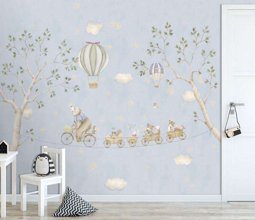Finally, wall murals for lovers of fast machines. Children's wall murals with cars, roads, airplanes, but also with excavators, flying balloons and cranes will bring your children enthusiasm and joy.