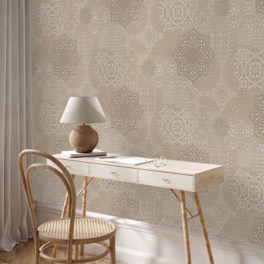 - Flexibility and design variability: Material effect wallpapers offer almost unlimited design and color possibilities. You'll find patterns that mimic the most diverse materials and styles. This allows you to adapt the look of your space according to current trends or personal preferences without the need for costly and permanent changes. It’s much easier to replace a wallpaper than to overhaul an actual material finish.
