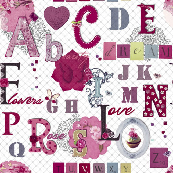 Scrabble - a romantic collage design, suitable for a girl's room. The background is a fine metallic pattern. Combine with related patterns.