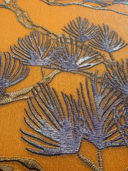 Luxurious orange non-woven wallpaper with vinyl surface, semi-glossy blue tree branches.
