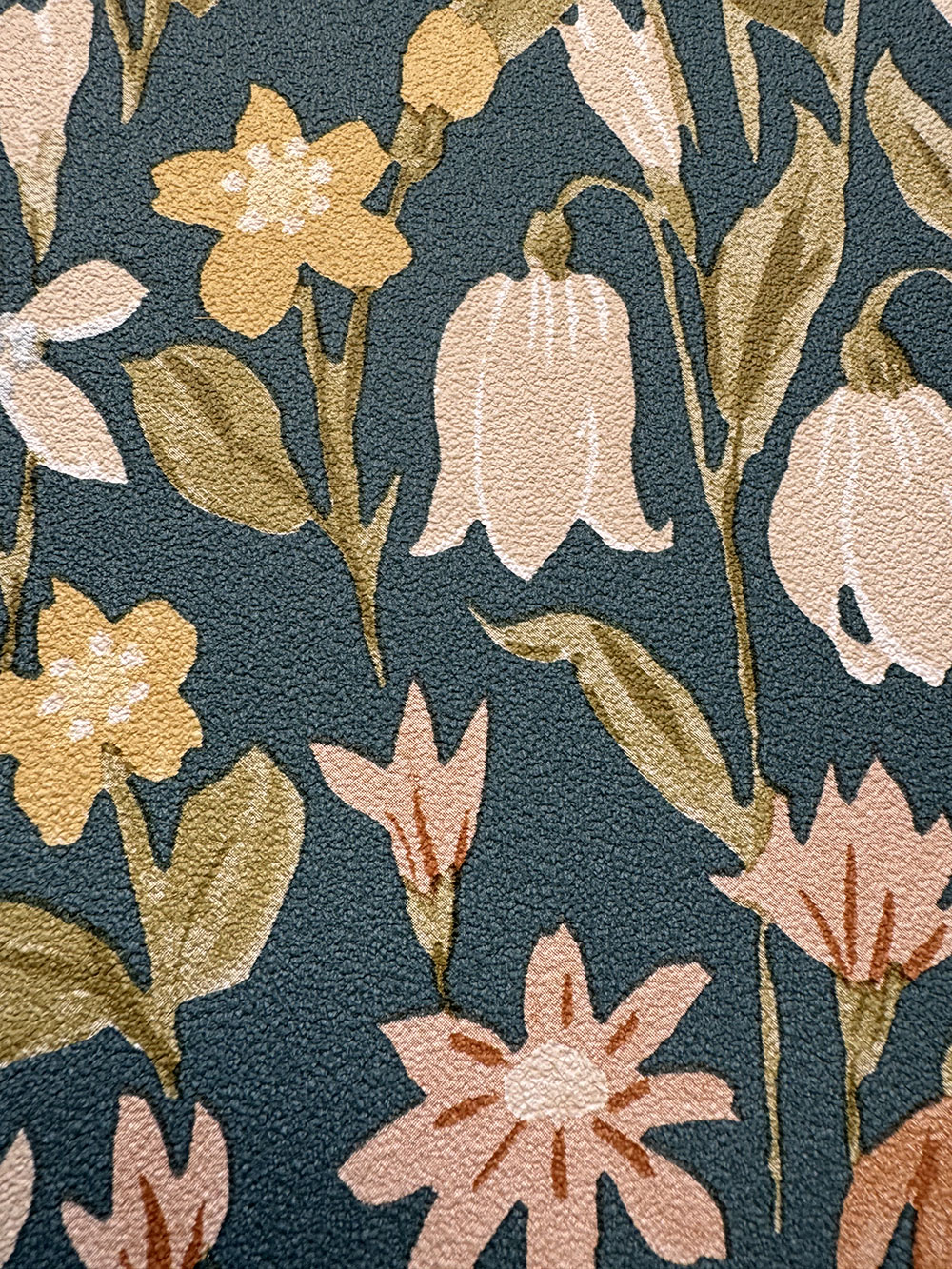 Green non-woven wallpaper, floral pattern.