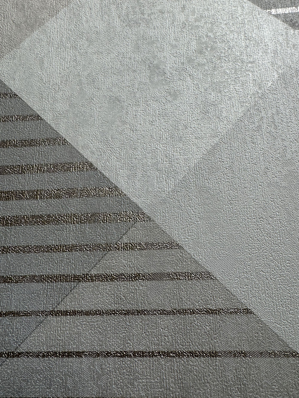 Non-woven wallpaper, geometric pattern in shades of grey-beige, lines in the color of light gold.