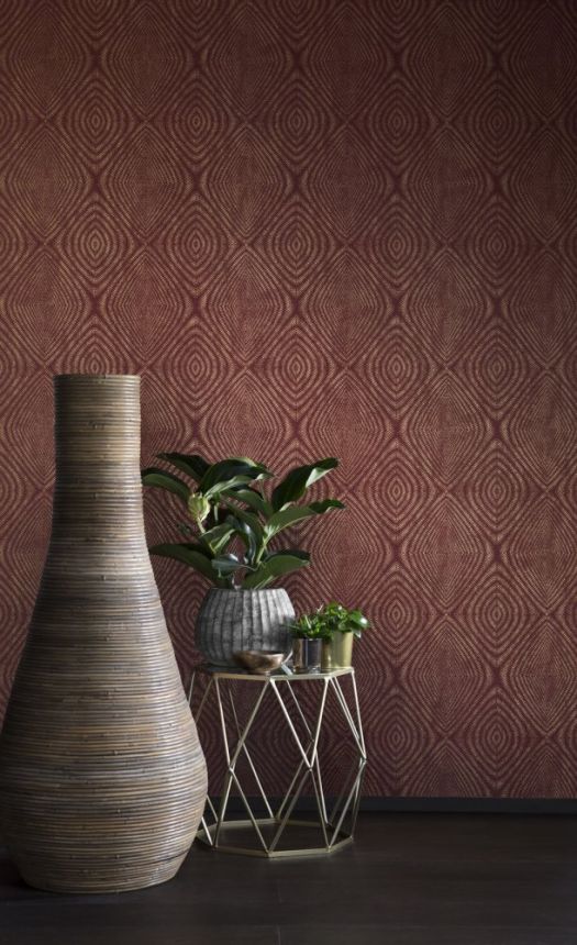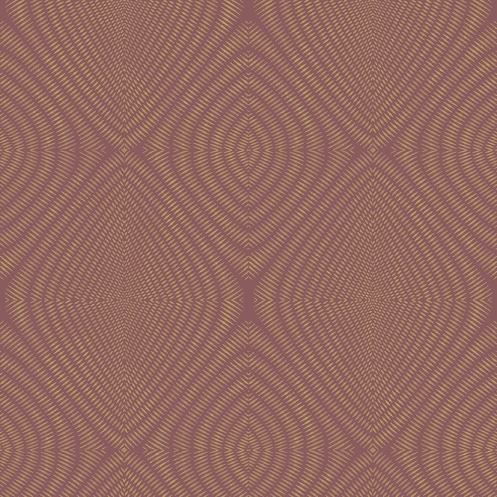 Rhombus - an ethnic diamond pattern. Dark bricky background, dashed pattern in a metallic gold with patina.