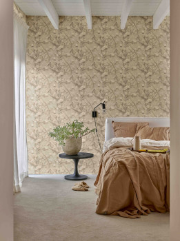 Non-woven wallpaper with a floral pattern in shades of beige and grey-beige - clear brush strokes, embossed effect. Inspired by the work of Vincent Van Gogh - The Pear Tree in Bloom.