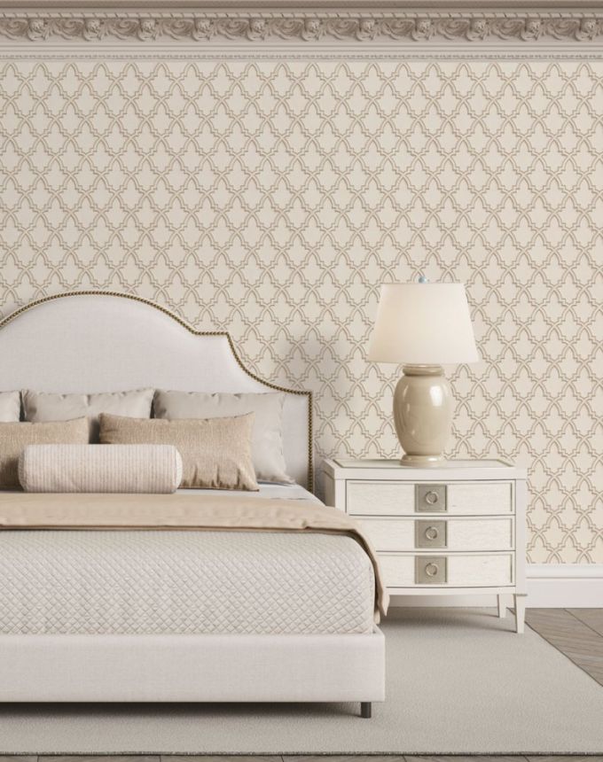 Luxury non-woven wallpaper with a vinyl surface DE120023, Geometric ornamental pattern, Wallstitch, Design ID¨