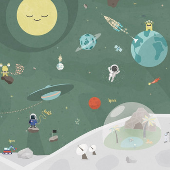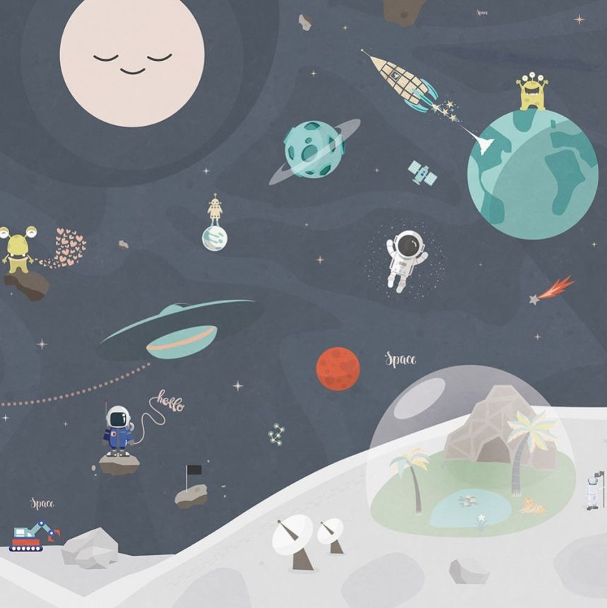 Original mural wallpaper for little astronauts. Digital print, non-woven.