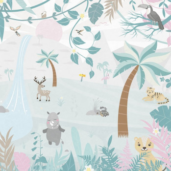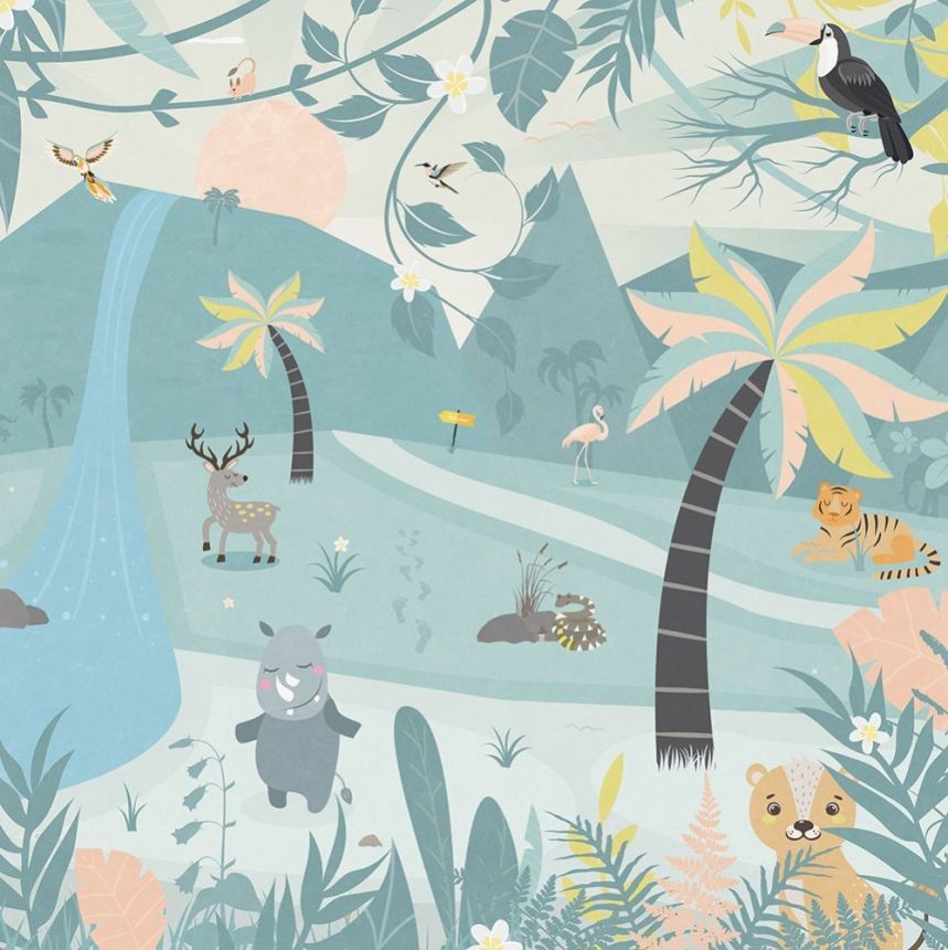 Original mural wallpaper for the little ones - tropical paradise - nature, animals.