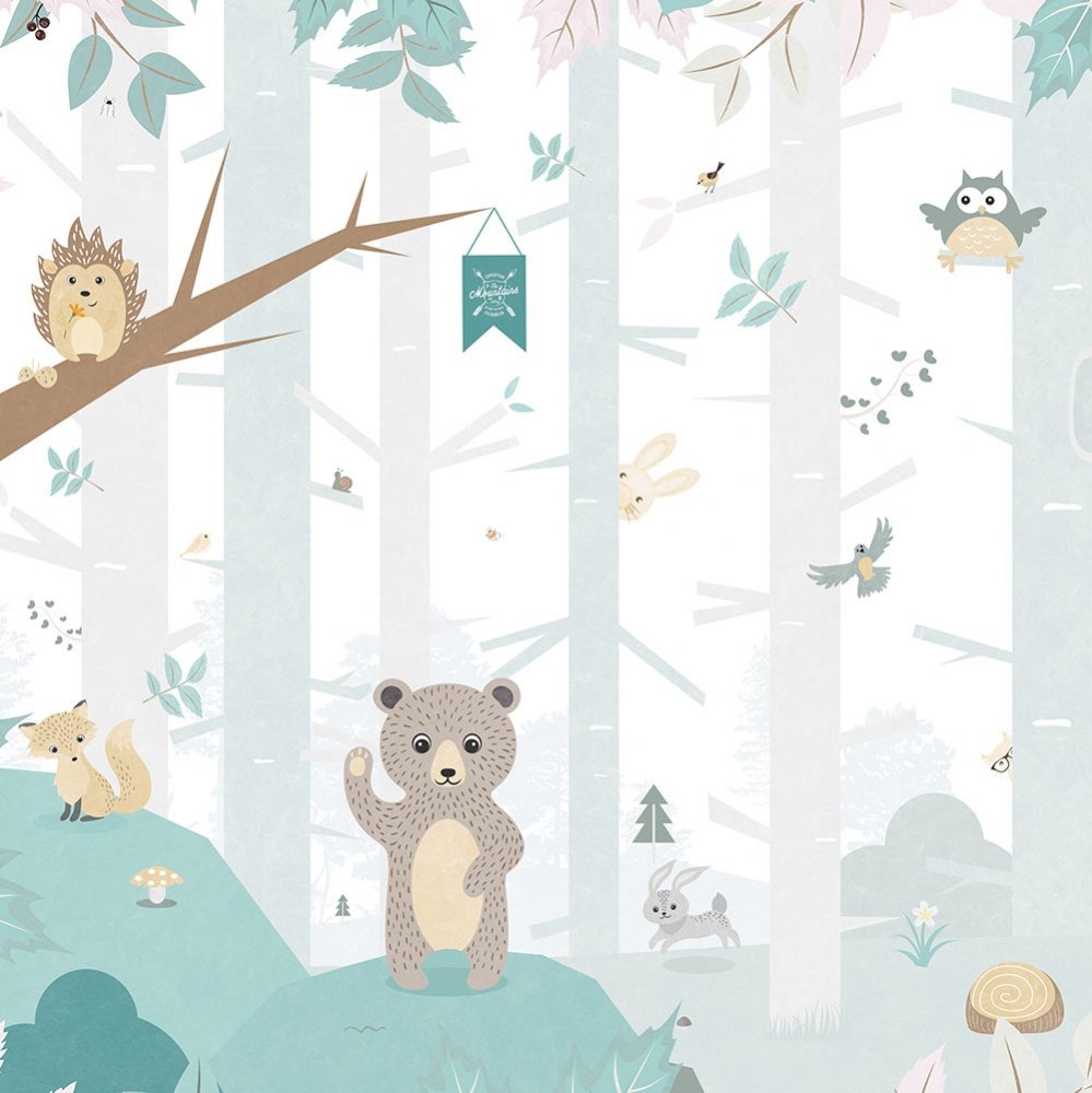Original mural wallpaper for the youngest children - forest and animals. Non-woven, digital print.