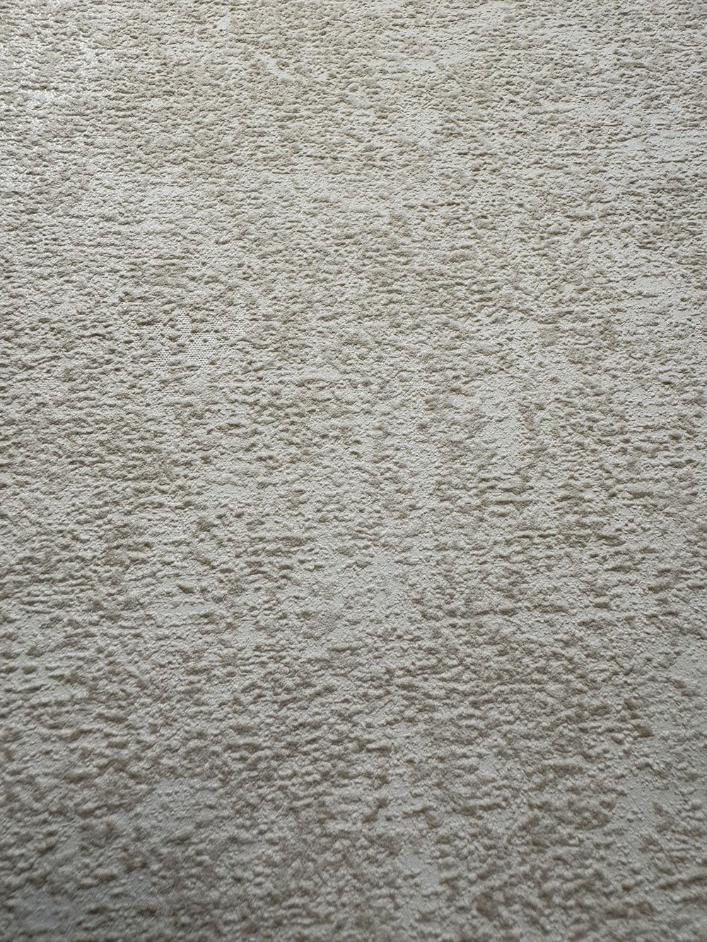 Beige non-woven wallpaper with vinyl surface, plaster imitation.