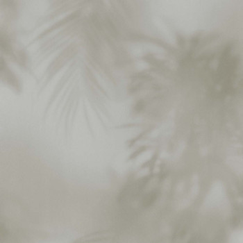 Exclusive wallpaper with original motifs of soft focus palm leaves in shades of gray-beige and olive green.