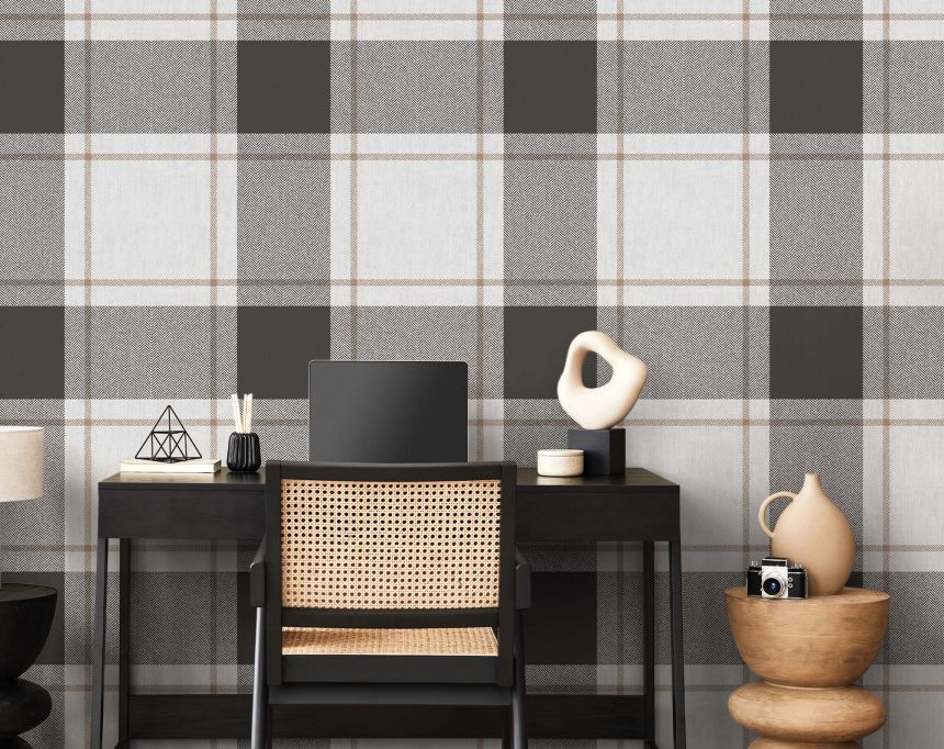 The wallpapers come in shades of brown, beige and grey – natural, elegant tones. The blend of traditional patterns with a modern colour scheme makes this collection perfect for living rooms, home offices and entrance halls.