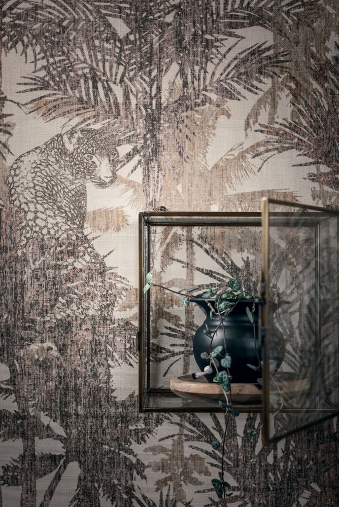 PANTHERA collection - Nature and wildlife are common sources of inspiration in the fashion world. Animal prints feature prominently on catwalks and in closets. In this bold new collection, we have applied this timeless trend to wall decorations. The collection is just as diverse as nature itself, offering endless options for creating a natural ambience. Palm trees, animals and exotic landscapes contrast with and complement one another. Different patterns converge to create a whole new world. It’s tranquil and balanced. But the collection has another side too. Wild animals appear from nowhere, ethereal and untameable. And once the leopard makes its entrance, serene calm gives way to uncontrollable wildness. If you love natural or animal motifs, the Panthera wallpaper collection is the right choice for your interior.