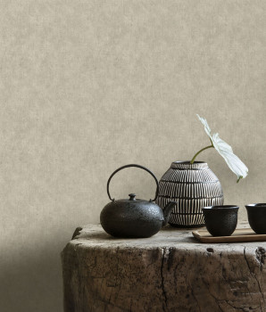 Non-woven wallpaper with vinyl surface, fabric texture, shades of gray-beige.