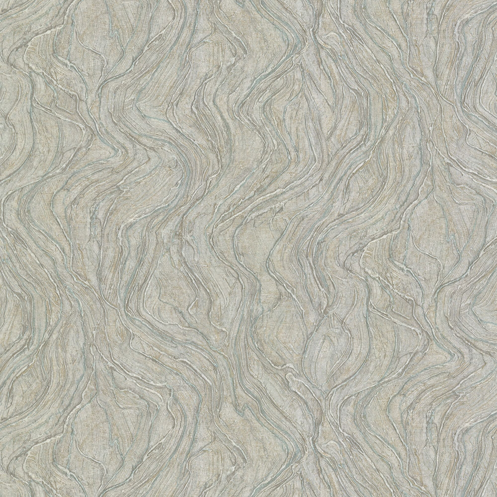 Inspired by nature - a distinctly embossed design in soft metallic shades of gray, turquoise, reflections of silver and gold.