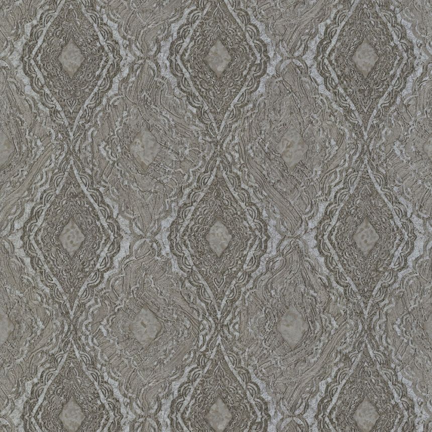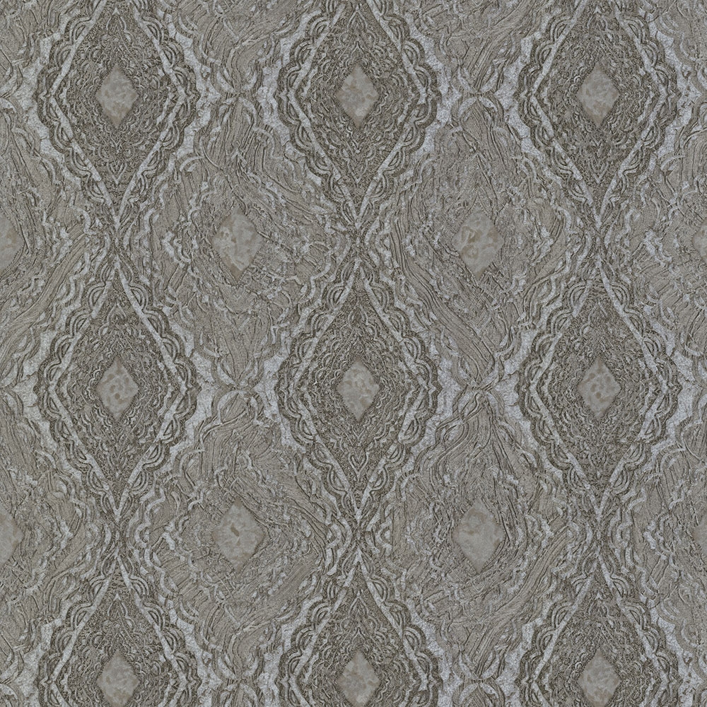 Luxury wallpaper inspired by nature - a distinctly embossed marbled design, background in soft metallic silver shades, golden-brown pattern.