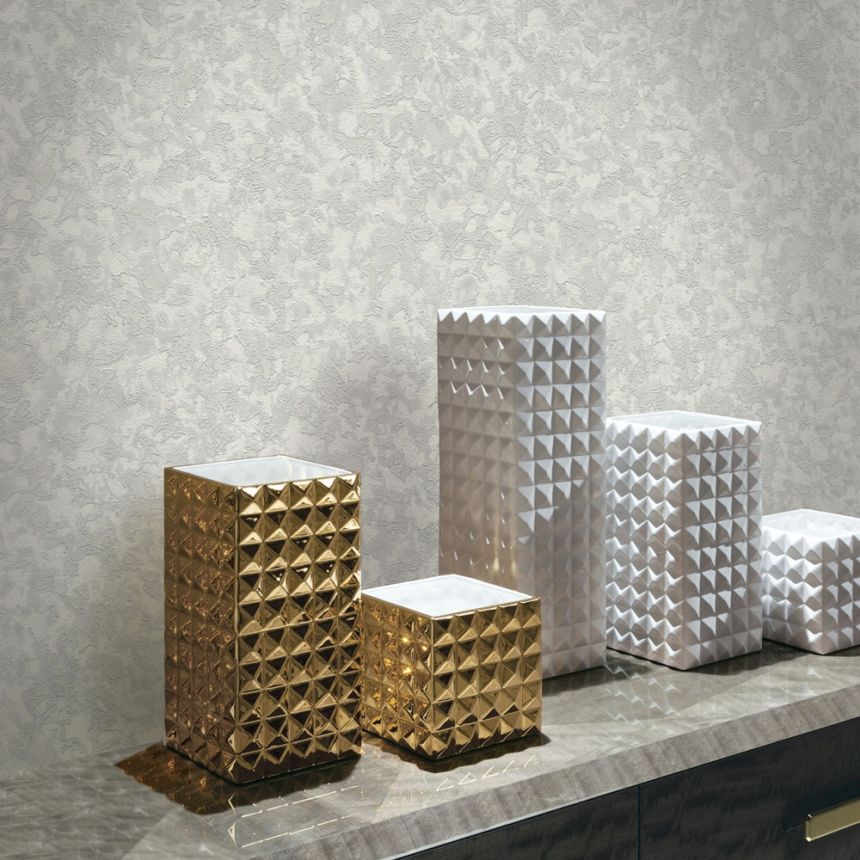 Wallpapers inspired by nature - a distinctly embossed design in soft metallic gray and silver shades.