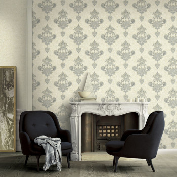 Luxurious non-woven wallpaper with a vinyl surface inspired by the beauty of Italian historic palaces - a baroque ornamental pattern, fine embossed texture.