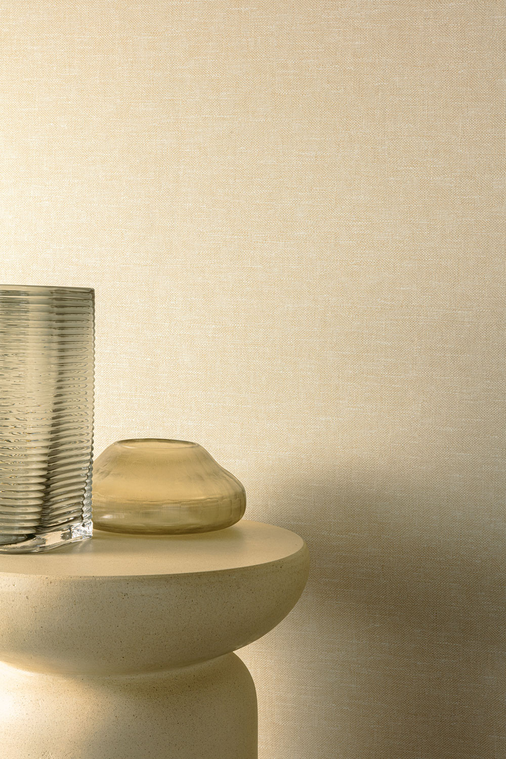 Non-woven wallpaper, fabric texture, shades of light beige/ivory.