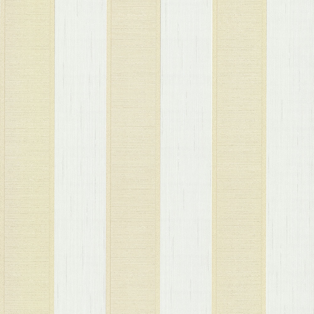 Non-woven wallpaper with a vinyl surface - an effective changing of fine textures creates stripes, that you can easily combine with related wallpapers. Creamy and golden-beige shades, narrow stripe with golden glitters.