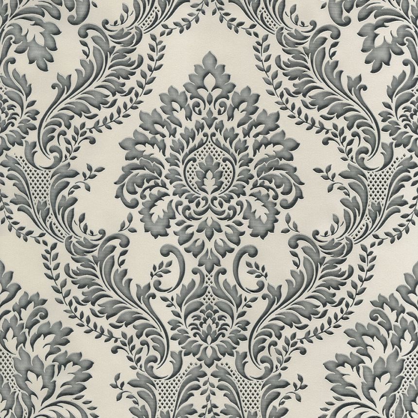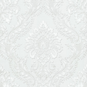 Bring style and elegance into your interior. Non-woven wallpaper with a vinyl surface - a finely embossed baroque pattern, colors on the wallpaper - white with a soft semi-gloss and anthracite / gray-silver embossing.