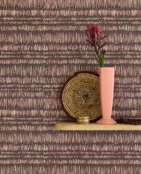 Non-woven wallpaper, batik striped pattern in shades of burgundy and beige.