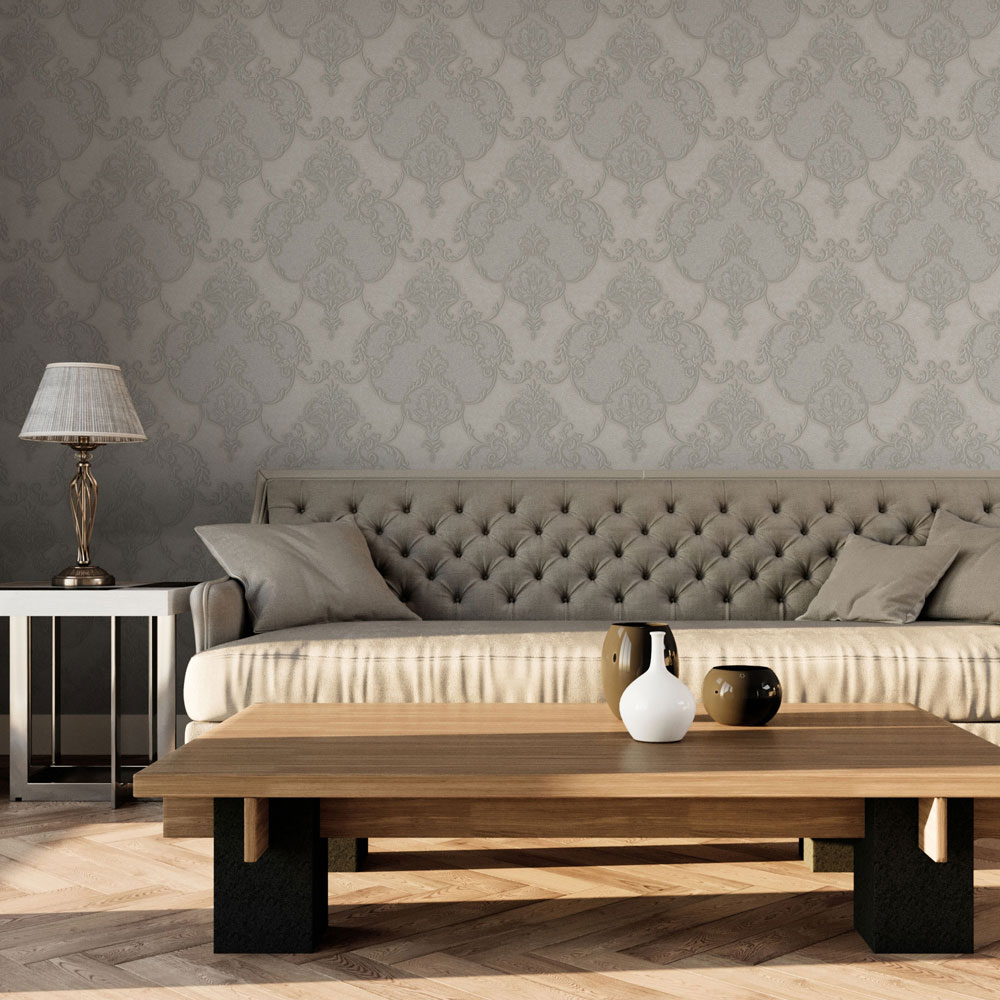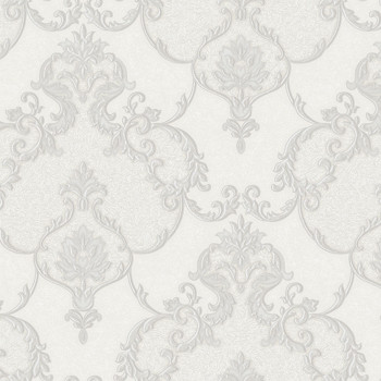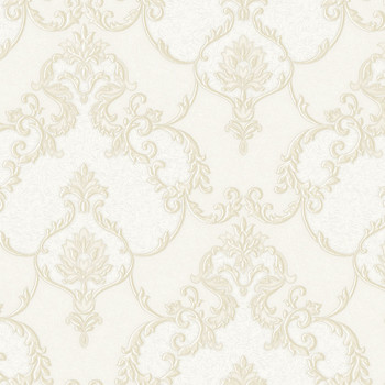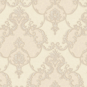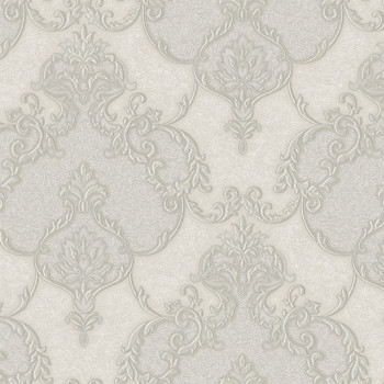 Luxury non-woven wallpaper, baroque pattern with gold semi-gloss, small glitters, shades of grey and grey-beige.