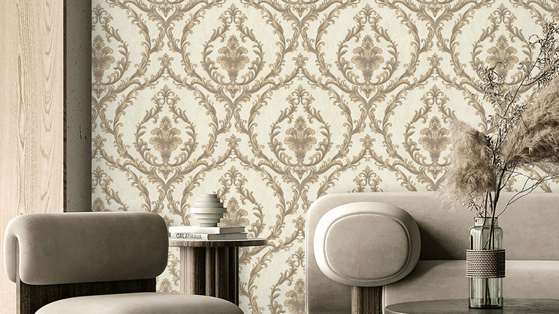 The wallpapers in this collection will enchant you with stunning details like embroidery effects, delicate lace patterns, and subtle glitter, adding an elegant and sophisticated touch to your walls. Traditional baroque patterns combined with modern elements create a cozy atmosphere filled with luxury and comfort.