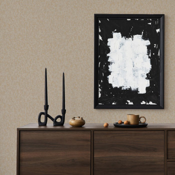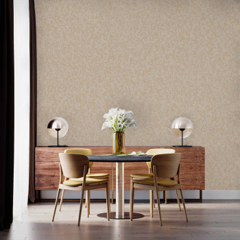 Luxurious brown-beige non-woven wallpaper, fabric imitation, small gold glitters in places.