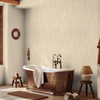 Luxury beige non-woven wallpaper with vinyl surface, distinctively embossed, semi-glossy texture.