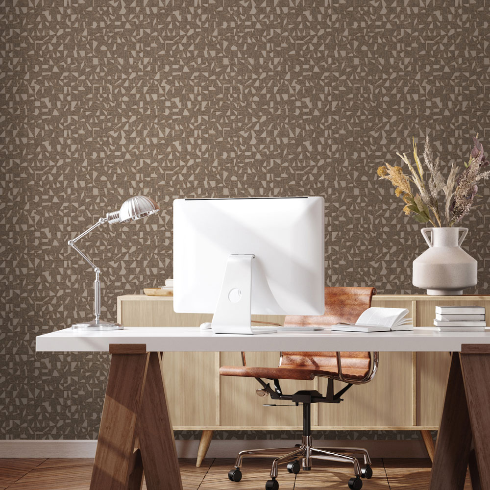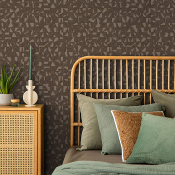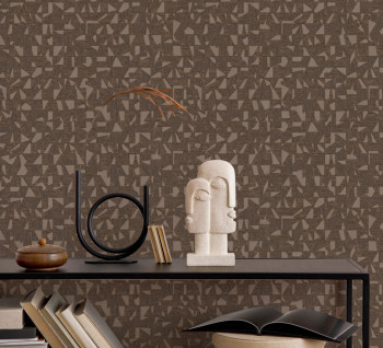 Geometric non-woven wallpaper with vinyl surface, effective texture alternation, shades of brown with bronze reflections.