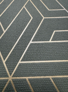 Green embossed geometric non-woven wallpaper, golden outlines.