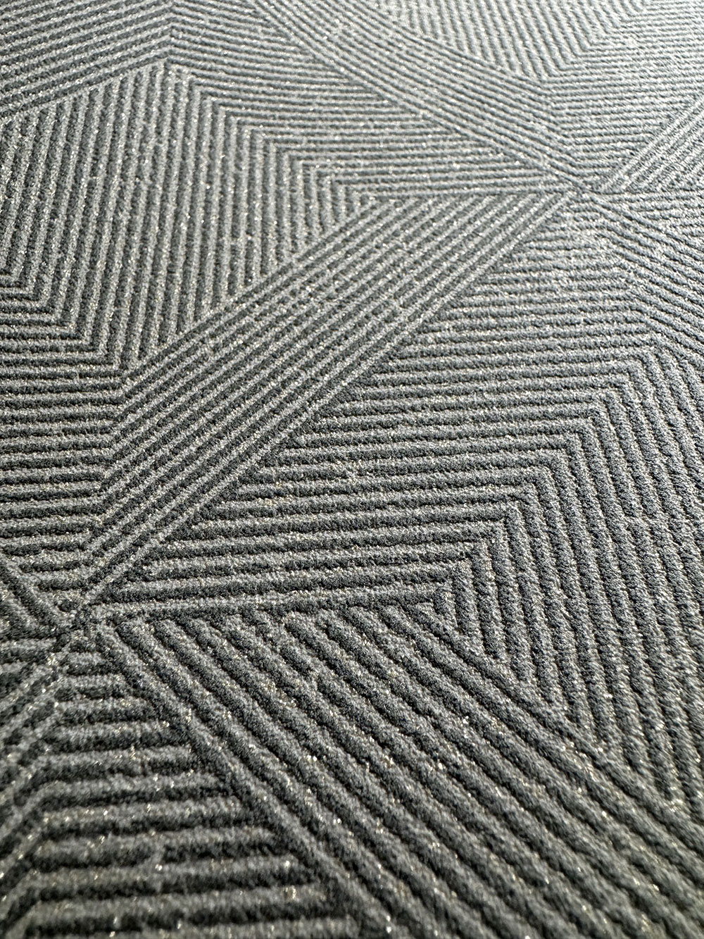 Geometric non-woven wallpaper, shades of gray and brown, small metallic glitters.
