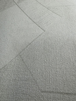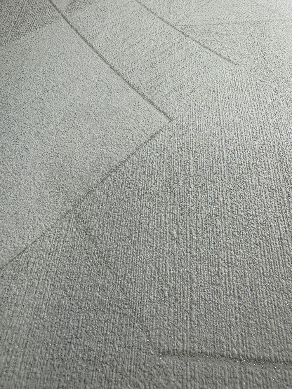 Geometric non-woven wallpaper, pattern made of different textures and metallic glitters.