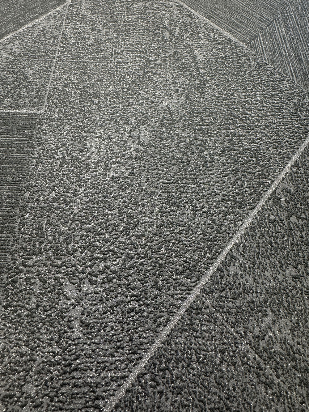 Geometric non-woven wallpaper, pattern made of different textures and metallic glitters.