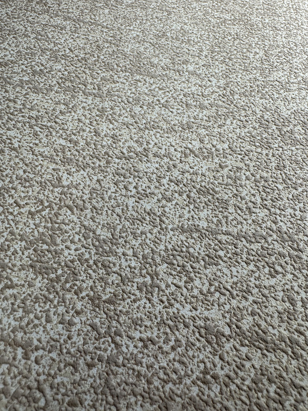 Beige non-woven wallpaper, coarser embossed texture.