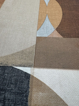 Geometric non-woven wallpaper, shades of brown and gray, fabric texture.