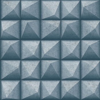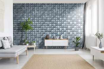 Square tiles design in matt and metallic blue and silver shades. Play of colors and shades creates a 3D effect. Smooth, finely grain texture.