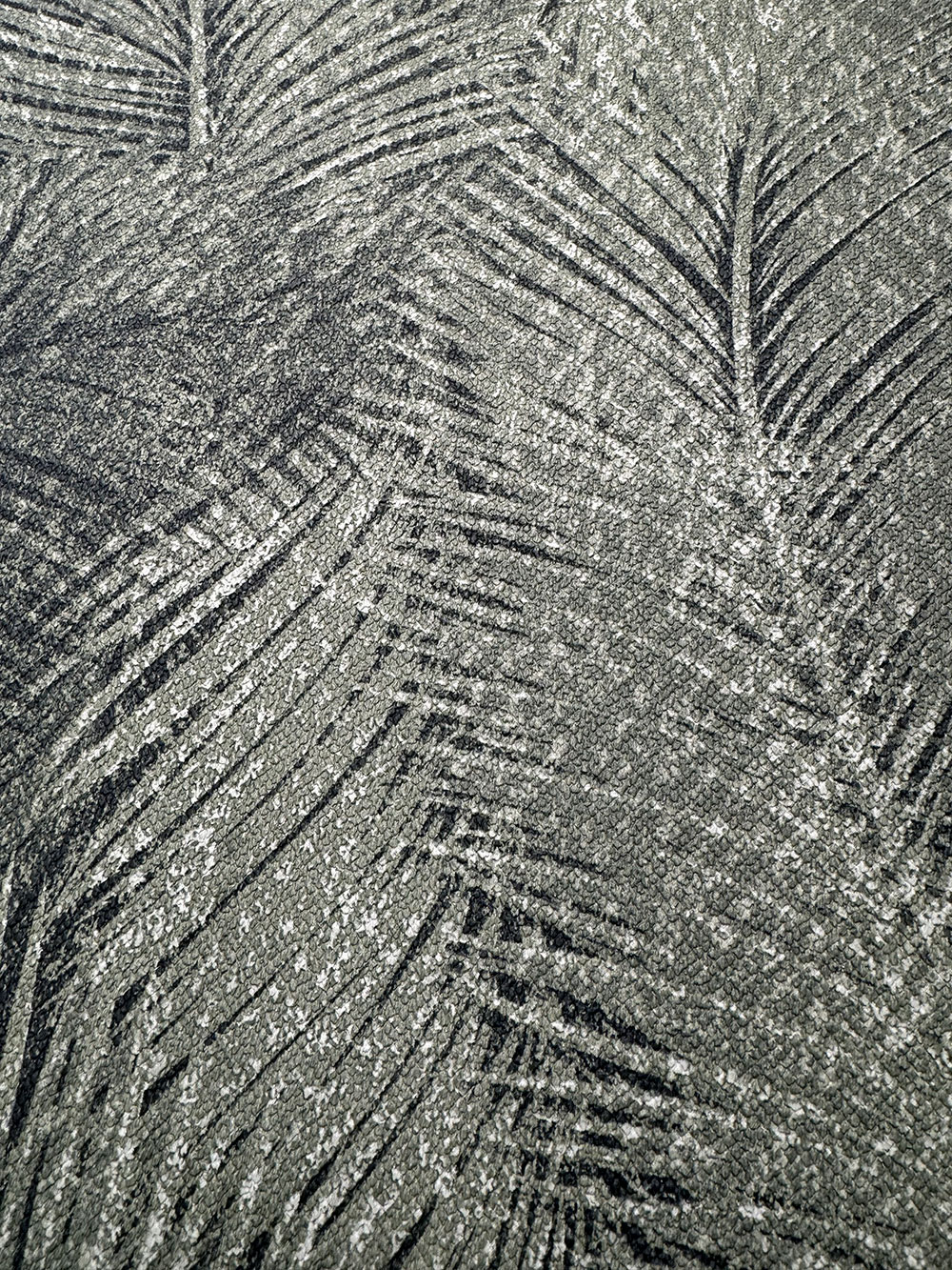 Non-woven wallpaper, motif of palm leaves in green shades.