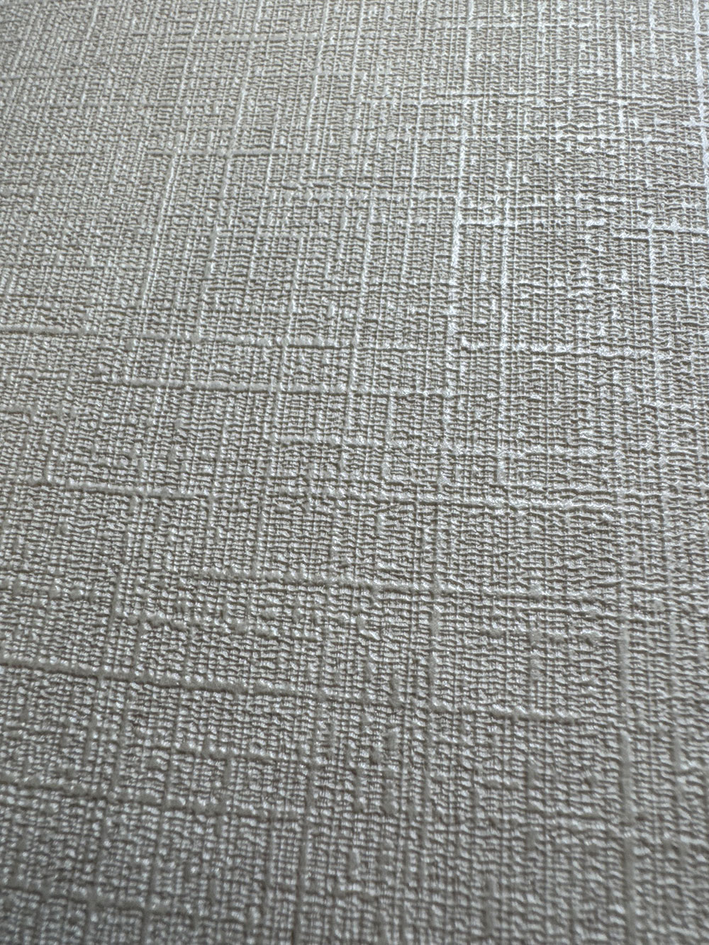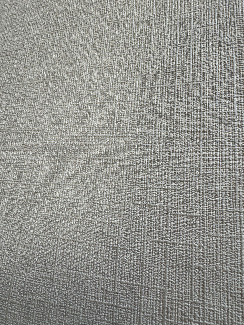 Wallpaper with a vinyl surface, fine textile structure, shade taupe / grey-beige.