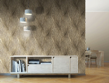 Smooth, metallic wallpaper, impressive brown-gold waves design gives your interior a style.