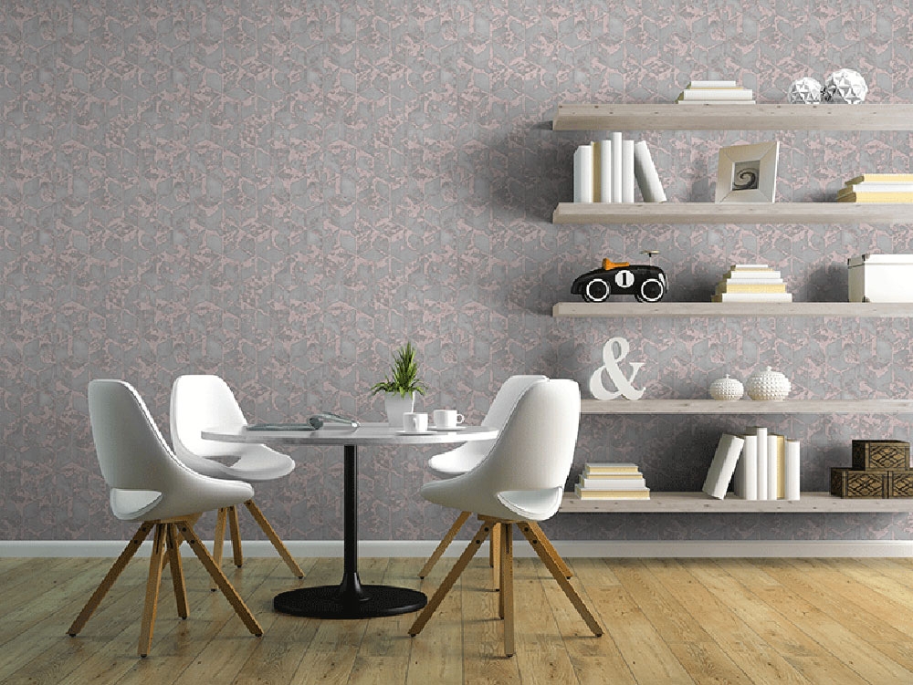 Geometric patterns add a new dimension into interior. Significant geometric pattern, semi-gloss pink punches, raised parts gray matt.