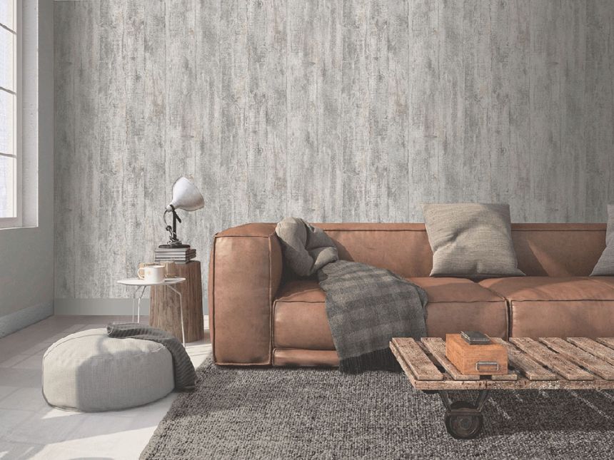 Wood is a natural material which emits beauty, elegance and calmness. Wood design makes every interior cosier. Popular wood planks, this time in gray shades on a non-woven wallpaper.