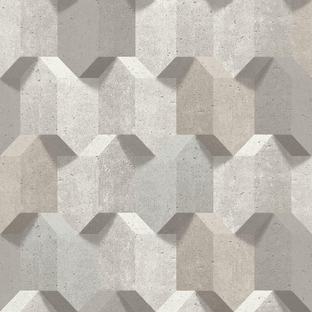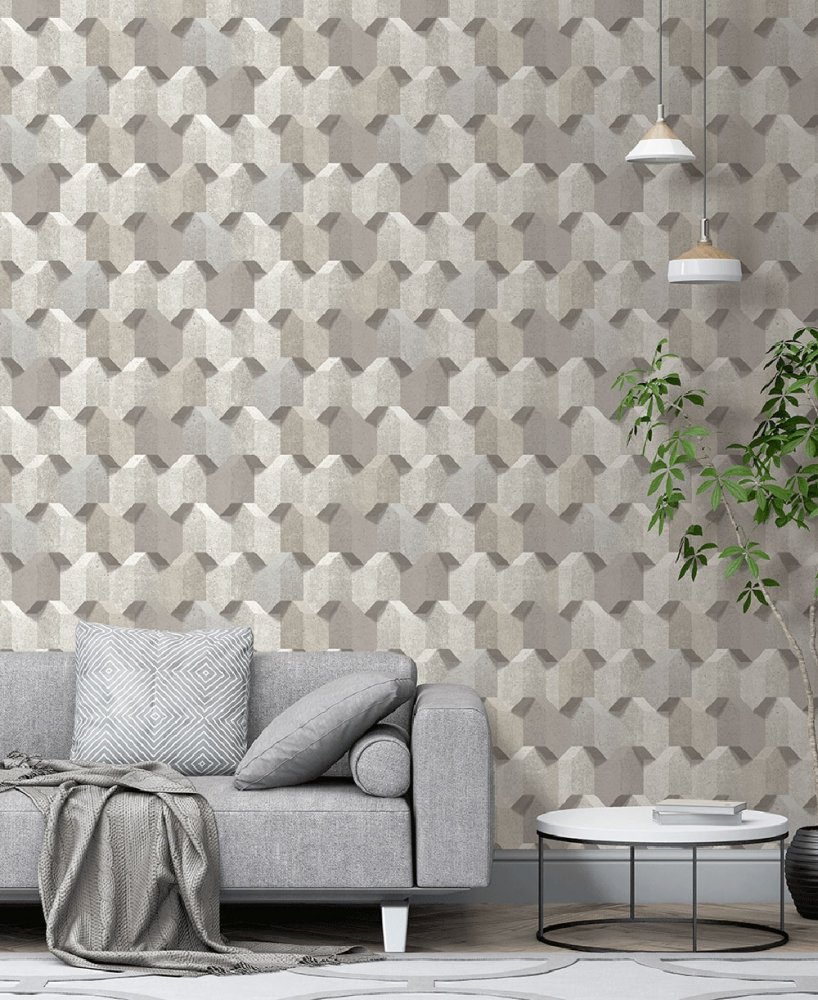 Geometric patterns bring a new dimension into interior. Unconventional geometric pattern in shades of gray, and beige.