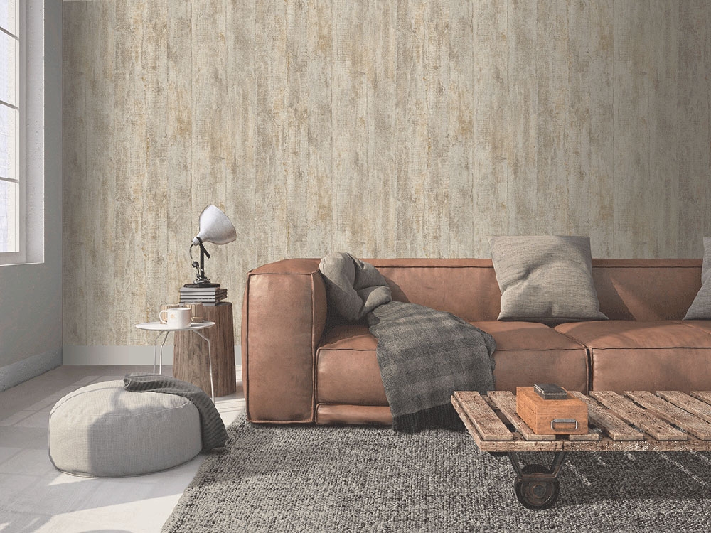 Wood is a natural material which emits beauty, elegance and calmness. Wood design makes every interior cosier. Popular wood planks, this time in brown-gray shades on a non-woven wallpaper.