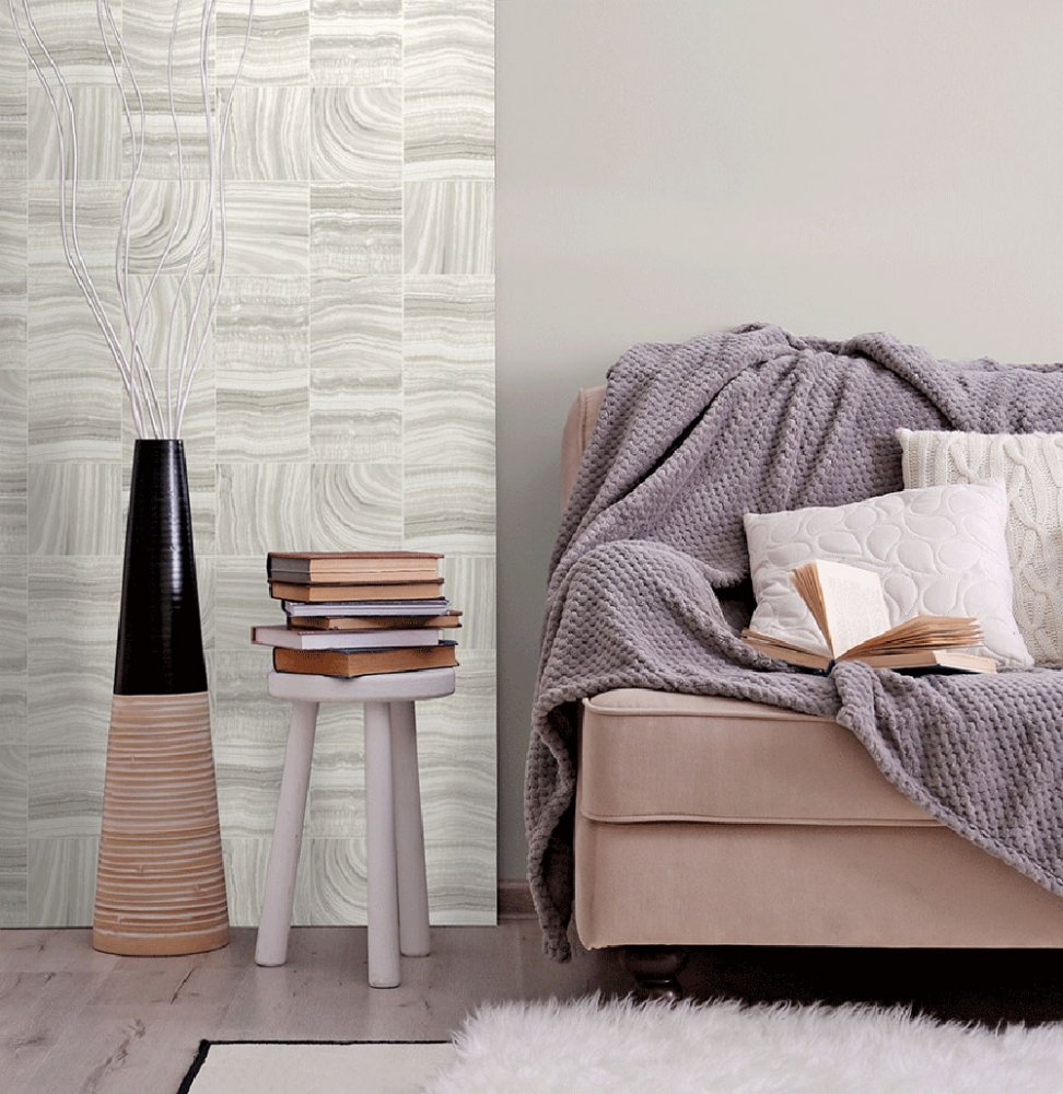 Marbled, smooth, glossy, tiles design in gray-beige shades.