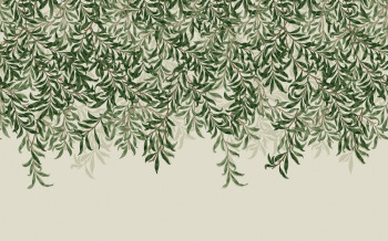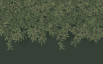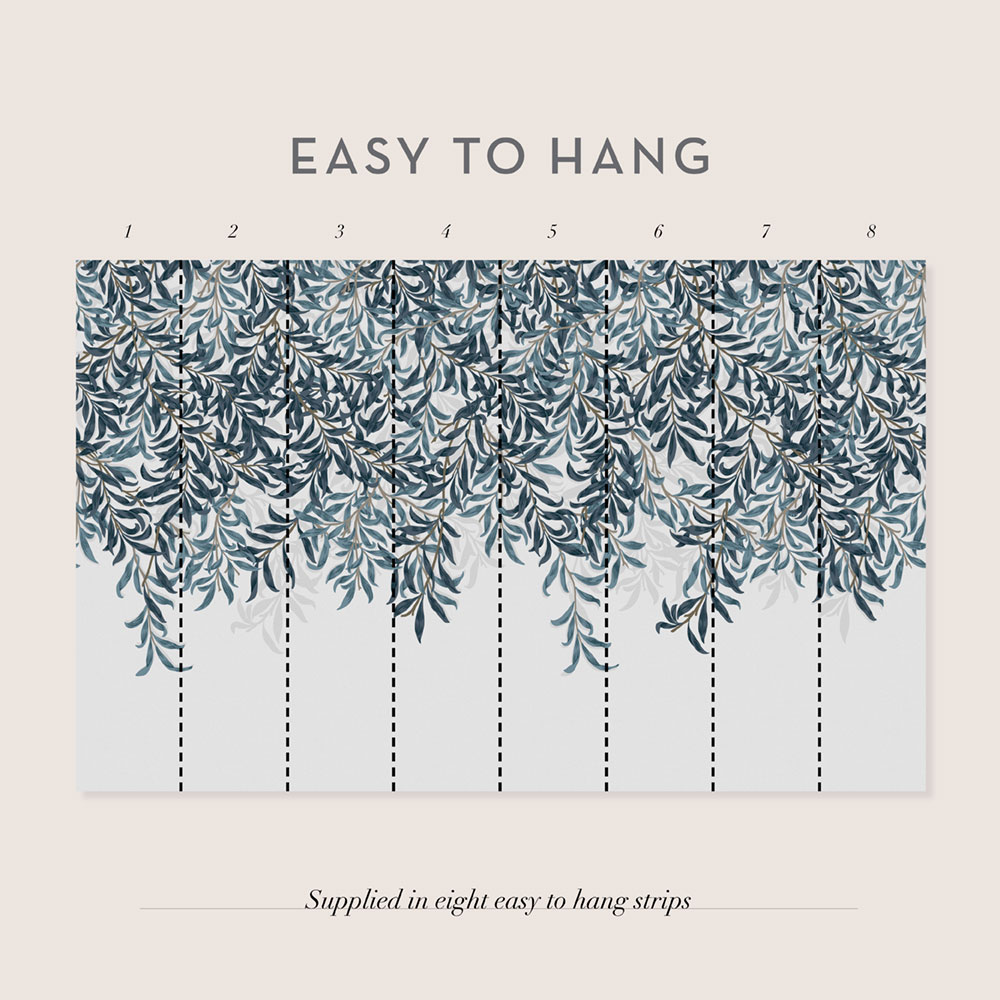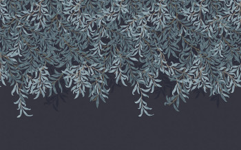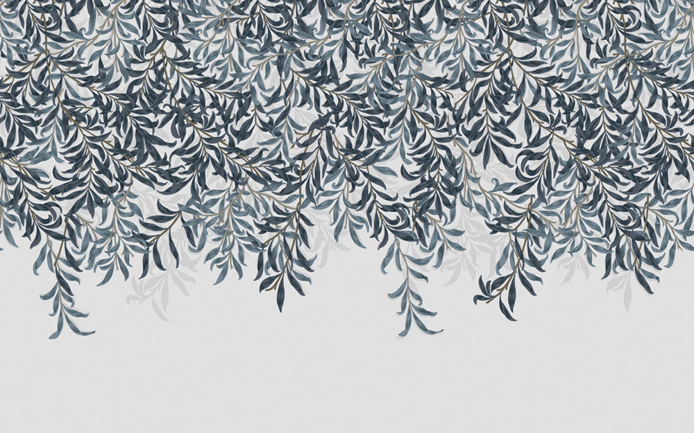 Non-woven wall mural, rich pattern with twigs in shades of blue.