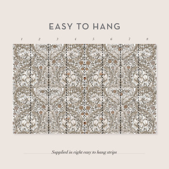 Non-woven wall mural, rich floral ornamental pattern, shades of gray and beige.