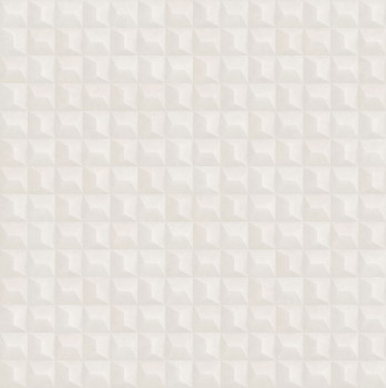 Gently embossed non-woven wallpaper with vinyl surface, 3D geometric pattern in shades of grey, metallic semi-gloss.