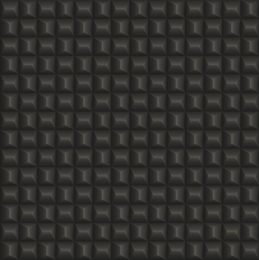 Gently embossed non-woven wallpaper with vinyl surface, 3D geometric pattern in shades of black, metallic semi-gloss.