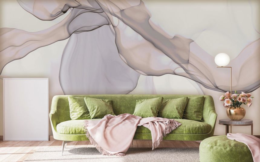 Gently embossed non-woven wall mural, abstract pattern, shades of grey and pink.